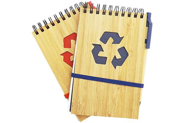 Bloco de anotações com suporte para canetas, produto em material ecológico.