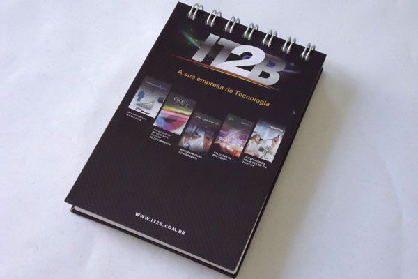 Bloco Caderneta - 10BRBLM... Bloco capa dura, revestida em papel couchê 150gr, impressão 2 cores, medidas: 10x14cm, quardas personalizadas em 1x1 cor, lombada quadrada, miolo com 100 f...
