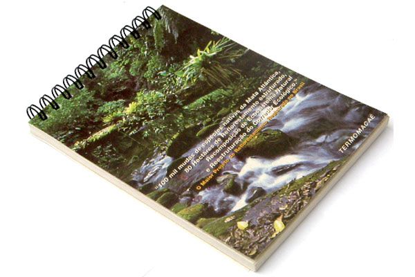 Caderno Ecológico A-5 - 1... Cadernos Ecológicos, A-5, capa dura, revestida em papel reciclado 120gr, impressão 4 cores, acabamento capa/contra-capa: laminação e empastamento, dados pe...