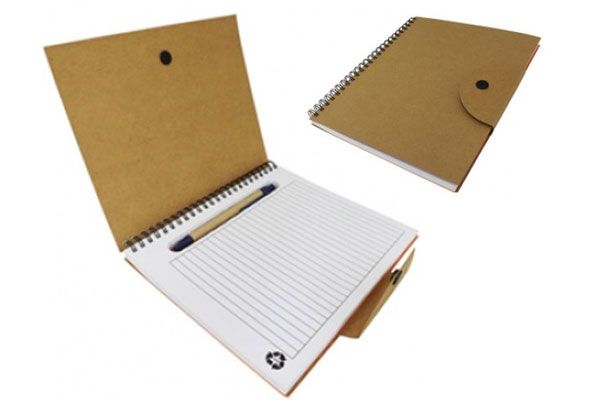 Bloco Ecológico - 10BR951... Bloco de Anotações com Porta-Caneta, capa em papel kraft 420gr, impressão em silk 1 cor já incluso, medida: 9,5x14cm, acabamento: laminação, faca e corte/v...