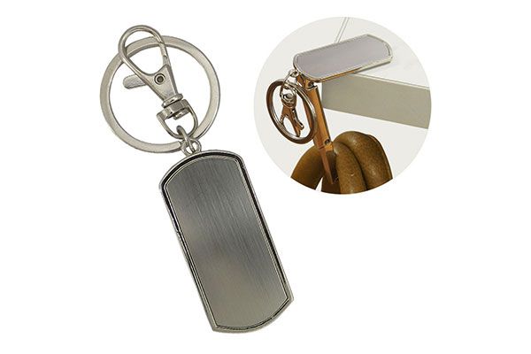 Porta Bolsa Metal - 10BR1... Porta bolsa de metal redondo, possui chapa central para gravação e parte traseira borracha anti deslizante. 1 gravação já incluso.