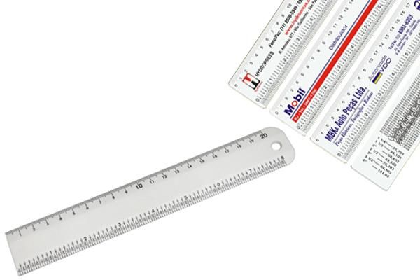 Réguas de Papel - 10BRRP2... Régua em papel triplex 300gr, 20cm, impressão off-set 4 cores, acabamento: laminação e refile.