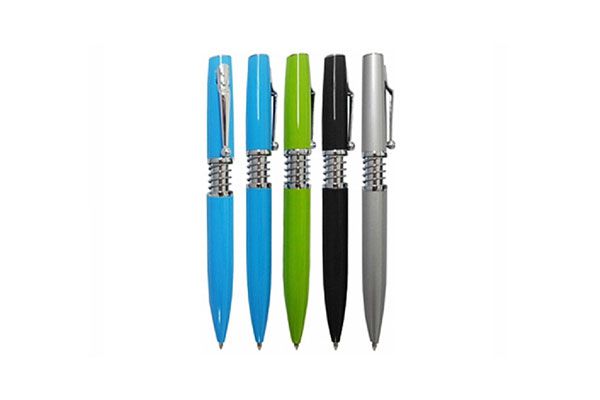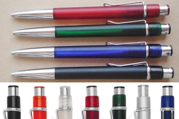 Caneta plástica diversas cores, acompanhada de cordão. Uma gravação já inclusa.