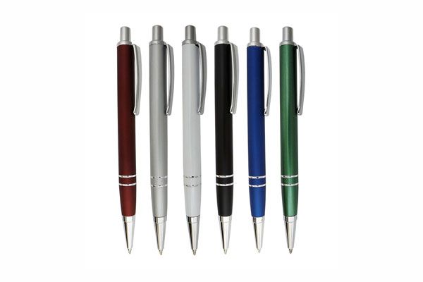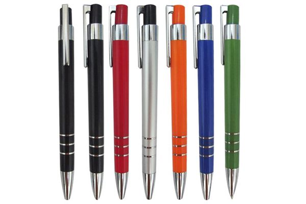 Caneta plástica, personaliza, importada, esfero, clipe, acionador e ponteira prata, corpo nas cores: vermelha, preta, prata, branca, verde, azul e laranja....