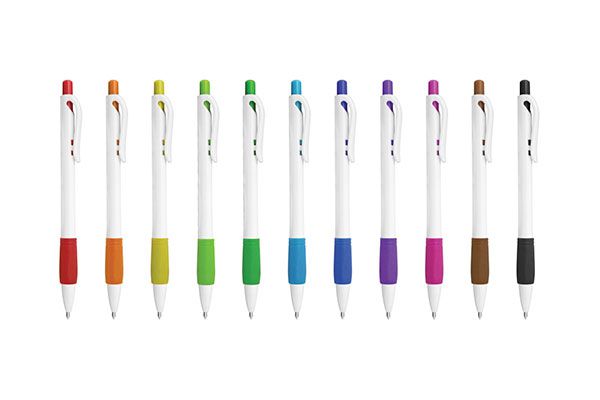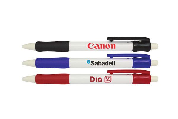 Caneta Clic Grip White - caneta esferográfica escrita média 1.0 - disponivel em diversas cores - gravação em uma cor já incluso.