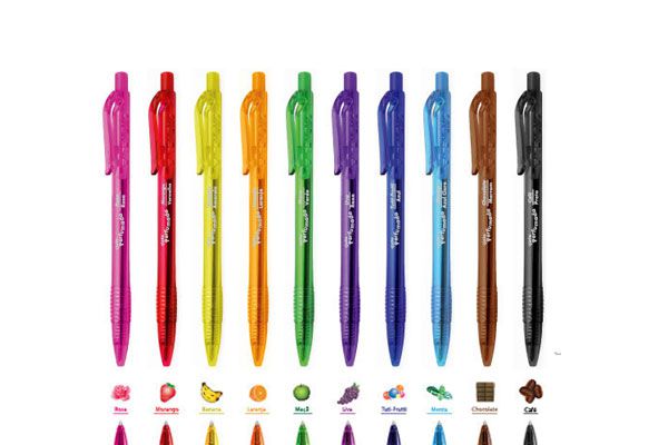 Caneta Clic Perfumada - caneta esferográfica retrátil c/ escrita média 1.0 nas cores e aromas: rosa rosas/ vermelho morango/ amarela banana/ laranja laranj...