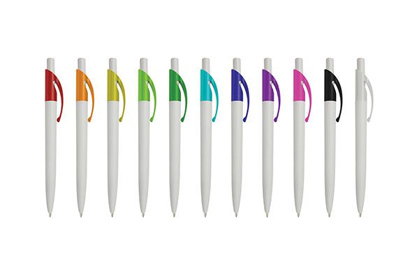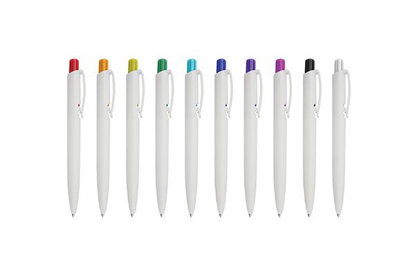 Caneta Free White - caneta esferográfica escrita média 1.0 - disponível em diversas cores - gravação em uma cor já incluso.