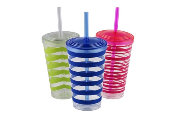 Copo Plástico com Canudo ... Copo plástico 480ml com tampa e canudo. Material plástico translúcido resistente e rígido, possui três faixa superiores em relevo, tampa rosqueável de form...