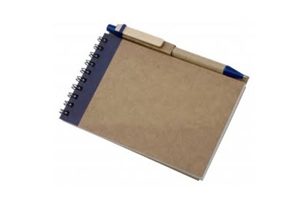 Blocos promocionais, capa com porta-caneta (caneta opcional), capa em papel kraft, impressão em silk 1 cor já incluso, miolo com 100 folhas em papel off-se...