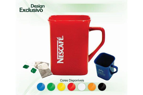 Caneca quadrada em plástico injetado PP, atóxico, resistente à microondas e máquina de lavar, capacidade de 250ml.