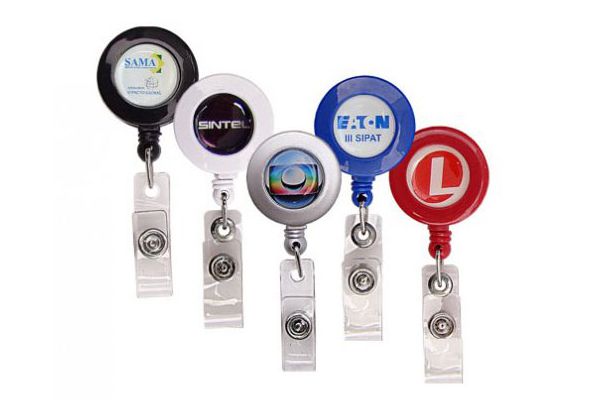 Porta Crachá Retrátil - Porta crachá retrátil de plástico resistente.