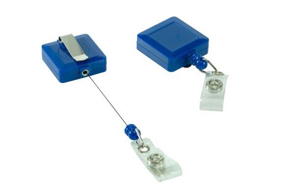 Porta crachá retrátil quadrado, material de plástico. Cordão com 72,5 cm. Tamanho total 3,2cmx3,2cm, personalização com etiqueta resinada com impressão dig...