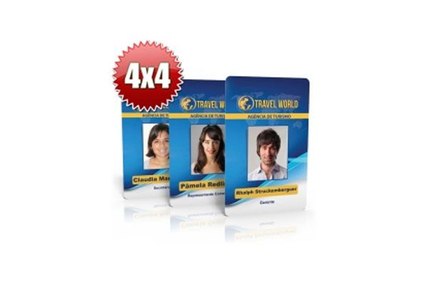 Crachás Verniz Cristal 4x1 - PVC 0,5 - Cristal - 4x1 - Verniz cristal Frente e Verso - tamanho 8,5x5,4, Impressão digital - Acabamento incluso cantos arred...