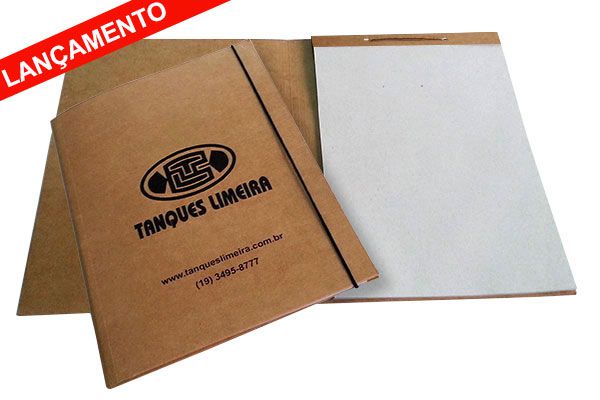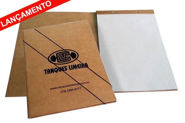 Pasta com bloco e bolso em papel triplex 350gr ou papel kraft 420gr, impressão em 1 cor já incluso, bloco com 25 folhas, bloco sem impressão, acabamento: ...