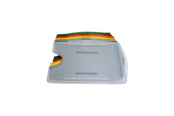 Porta crachá - Injetado em polipropileno (material rígido) com formato único para crachá com posição CONJUGADA, para acondicionar o crachá na VERTICAL ou n...
