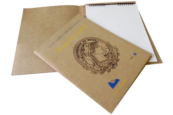 Caderno personalizado, capa em papel kraft 420gr, impressão 1 cor, miolo com 96 folhas em papel off-set 75gr, impressão 1x1 cor, layout exclusivo para cada...
