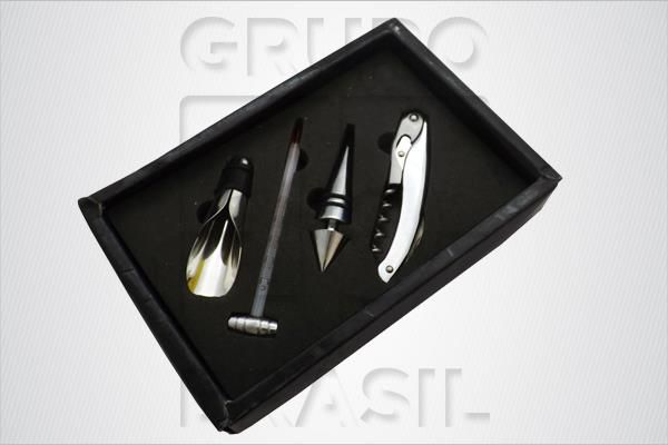 Kit vinhos para 1 garrafa, com 4 peças e estojo.