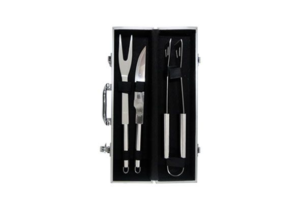 Kit churrasco com 3 peças de Inox, maleta de alúminio. Gravação em uma cor já incluso